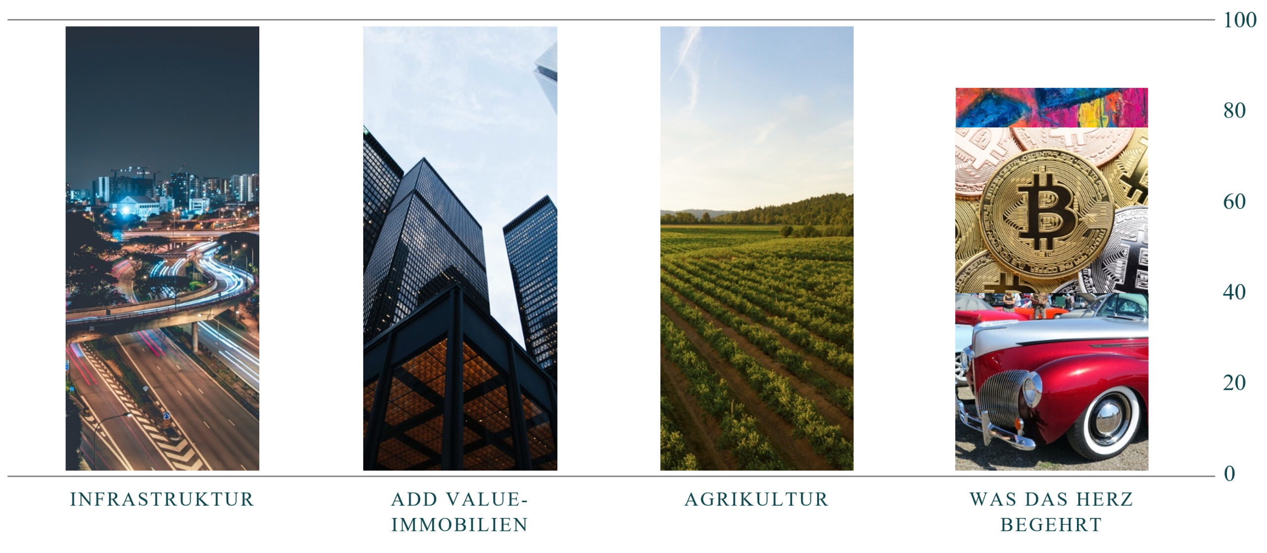 Die vierte Säule ist Auffangbecken aller Investments, die nicht den ersten drei Säulen zugeordnet werden können. Viele Mandanten kommen schon mit bestehenden Investitionen wie